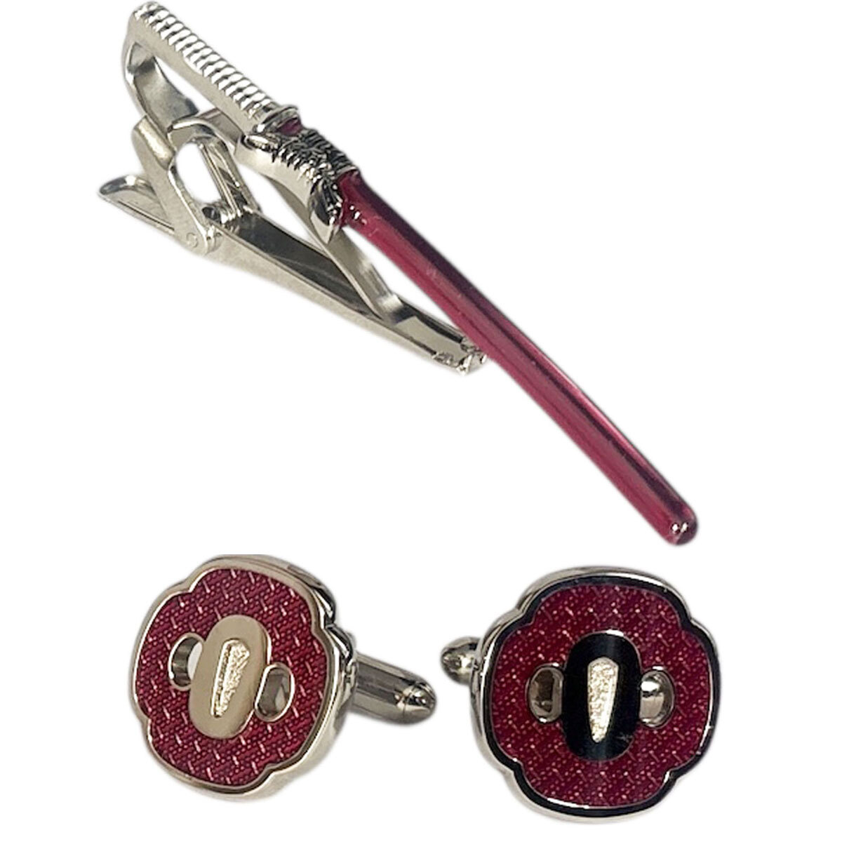 SWANK スワンク レッド日本刀&鍔カフスボタン・ネクタイピンセット