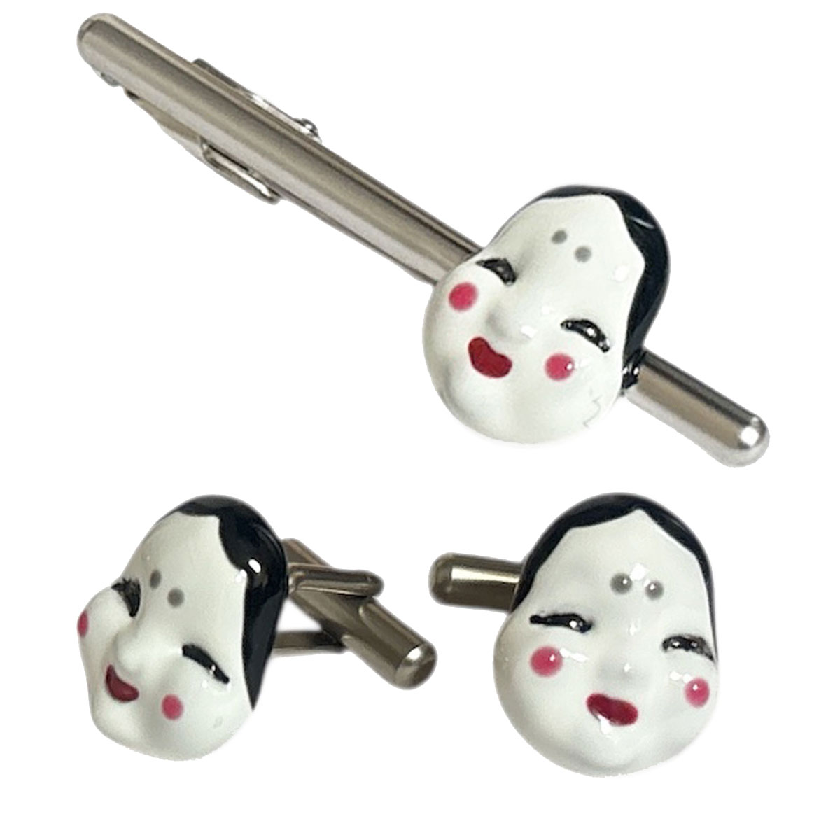 おかめカフスボタン・ネクタイピンセット [an017an011]