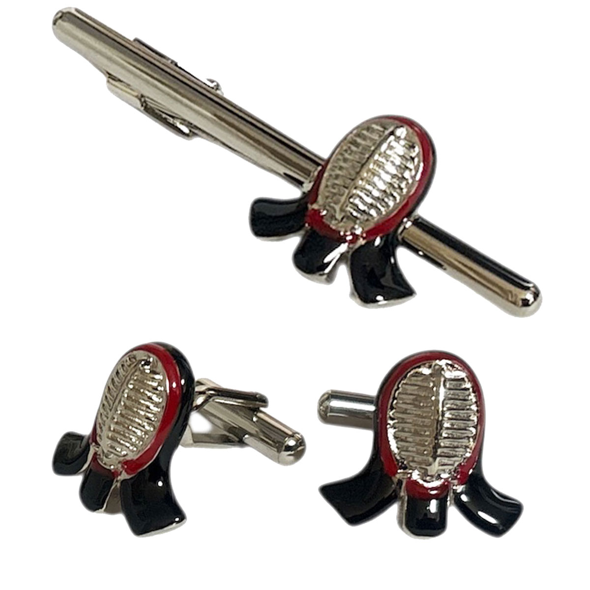 剣道の面をデザインした ユニークなカフスボタン。 袖口のアクセントにピッタリですよ♪