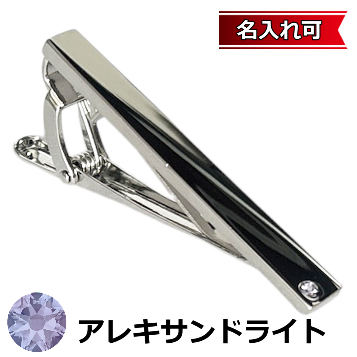 6月の誕生石カラー アレキサンドライトクリスタルガラスネクタイピン(タイバー)【名入れ可】 [birthtie-06]