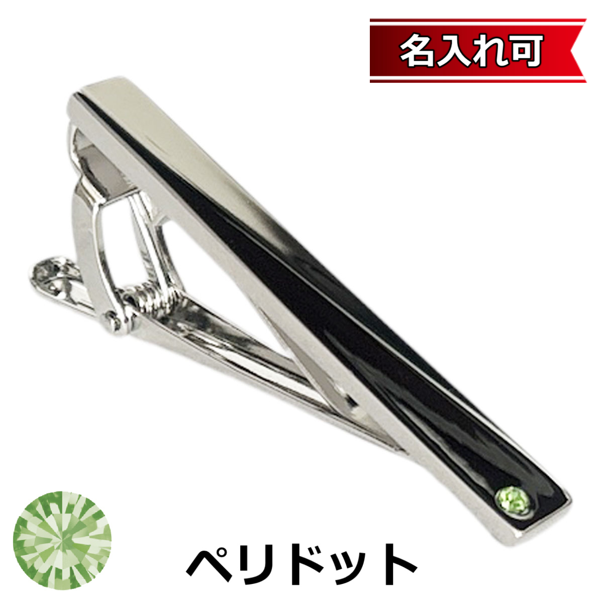 8月の誕生石カラー ペリドットクリスタルガラスネクタイピン(タイバー)【名入れ可】 [birthtie-08]