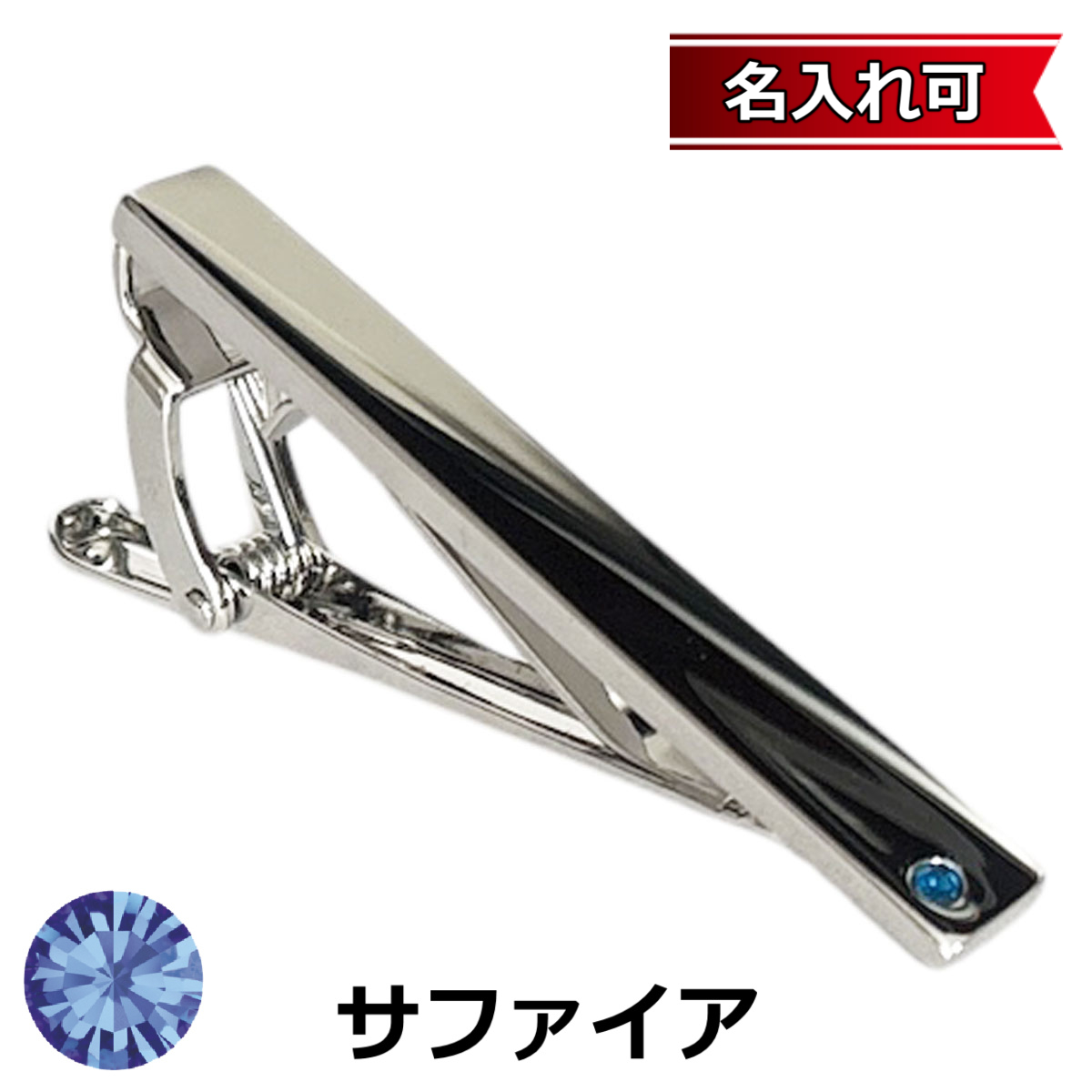 9月の誕生石カラー サファイアクリスタルガラスネクタイピン(タイバー)【名入れ可】