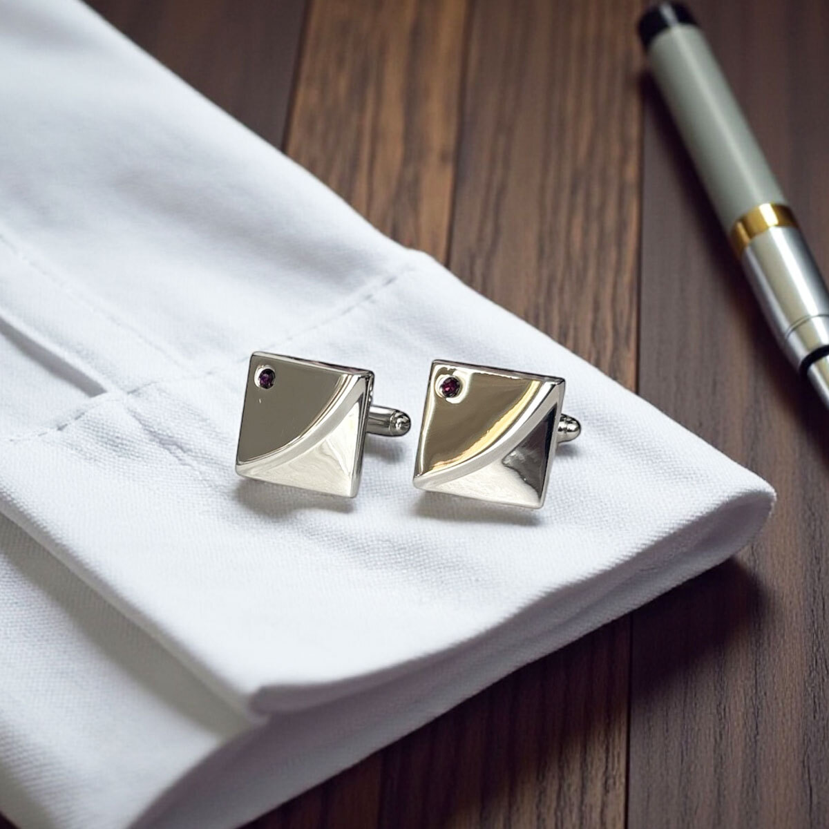 2月の誕生石カラー アメジストクリスタルガラスカフスボタン