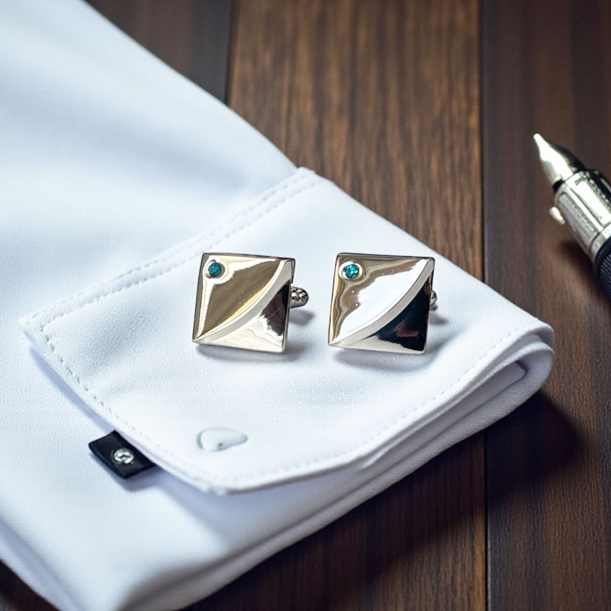 クリスタルガラスを使用したカフスボタン。