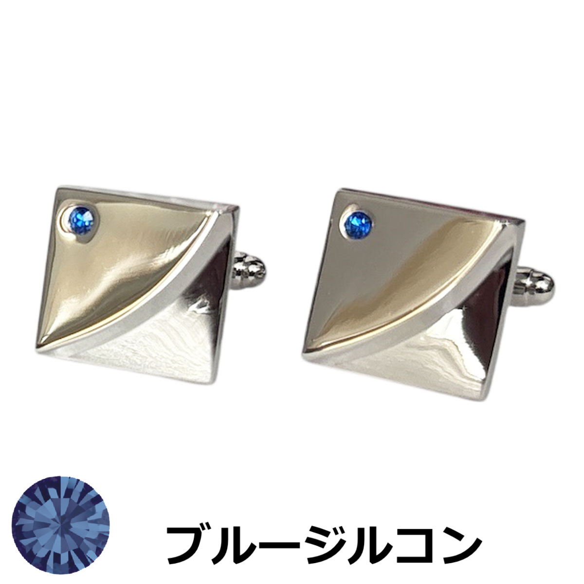 12月の誕生石カラー ブルージルコン.リスタルガラスカフスボタン
