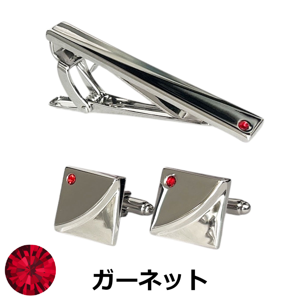 1月の誕生石カラー ガーネットクリスタルガラスカフスボタン・ネクタイピンセット [birthset-01]