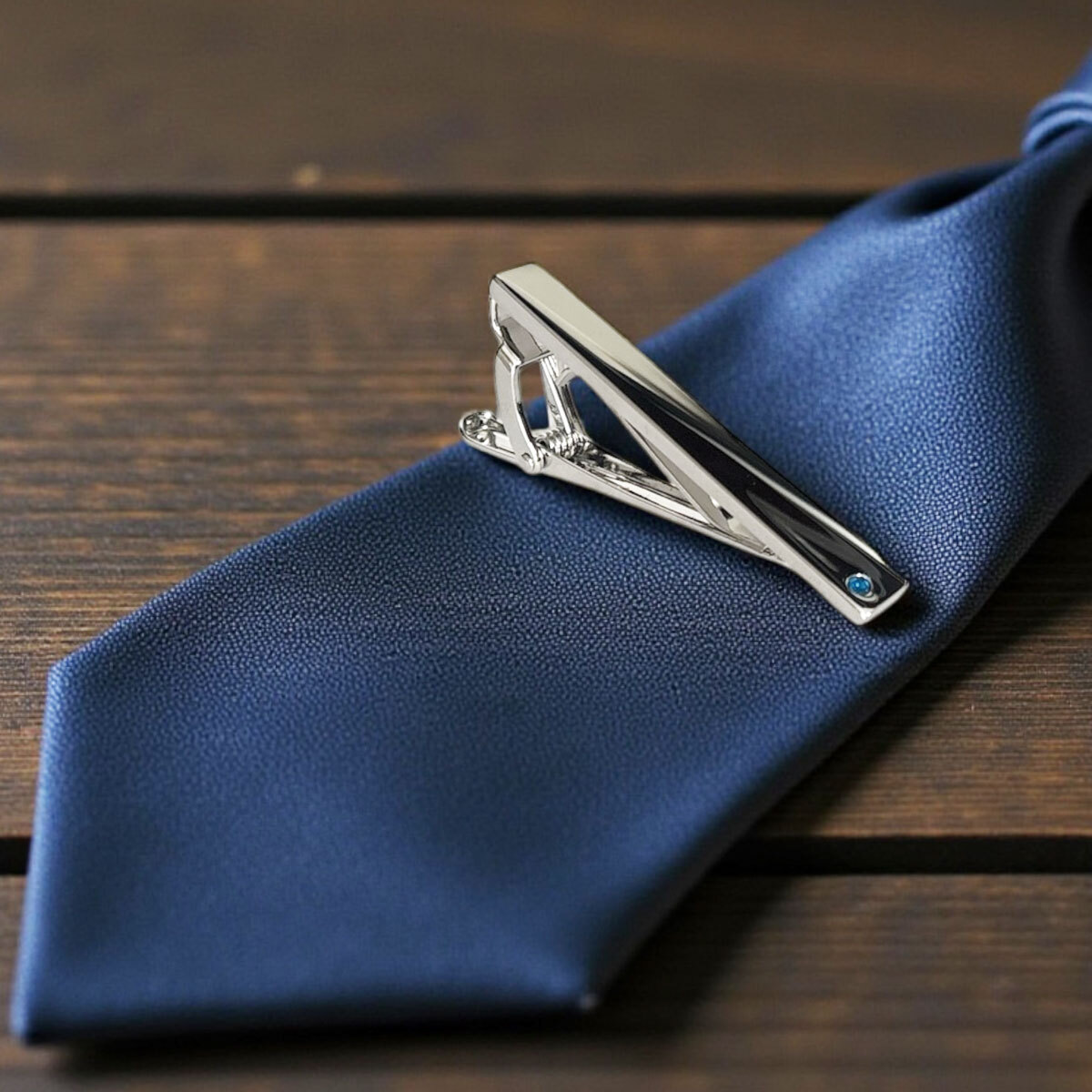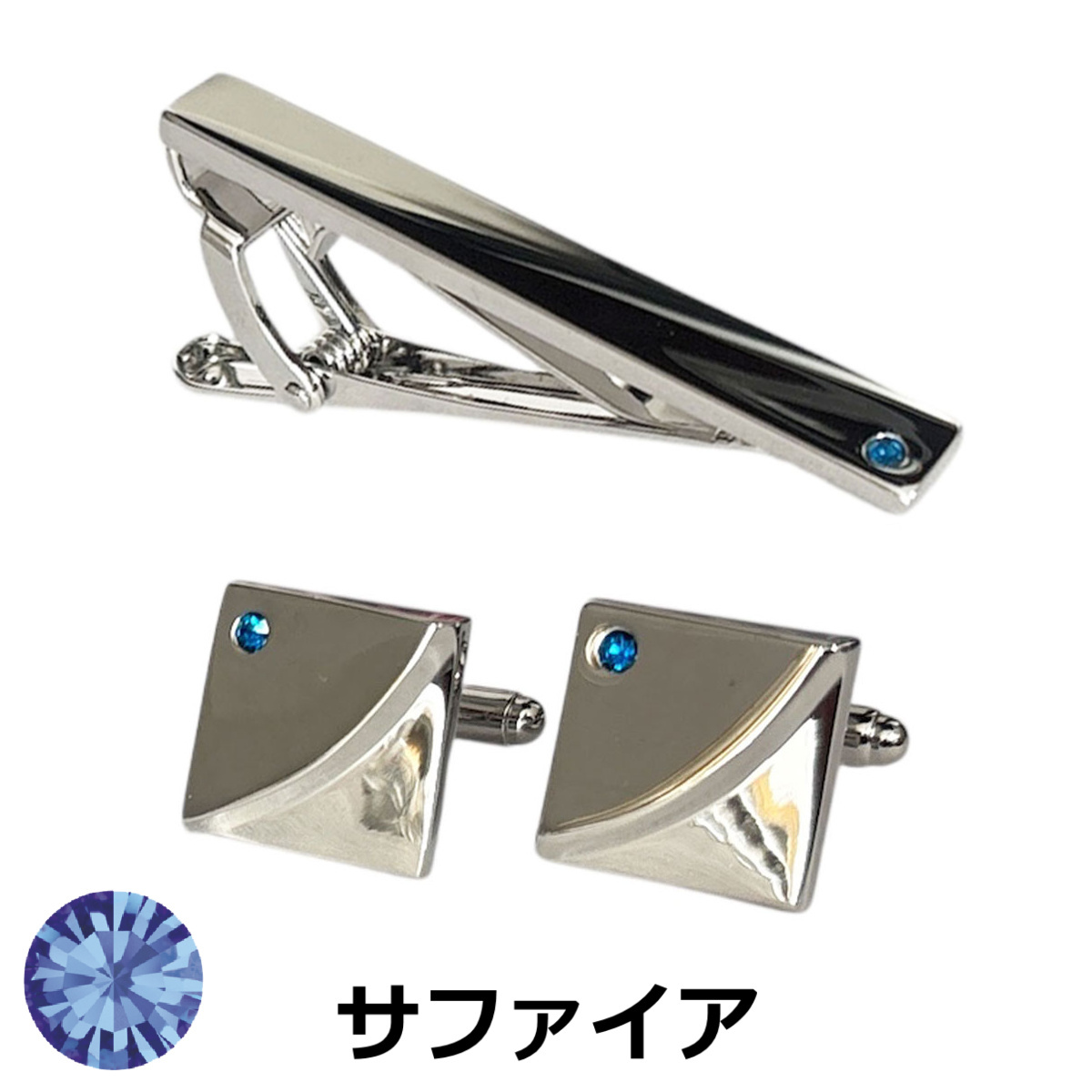 9月の誕生石カラー サファイアクリスタルガラスカフスボタン・ネクタイピンセット