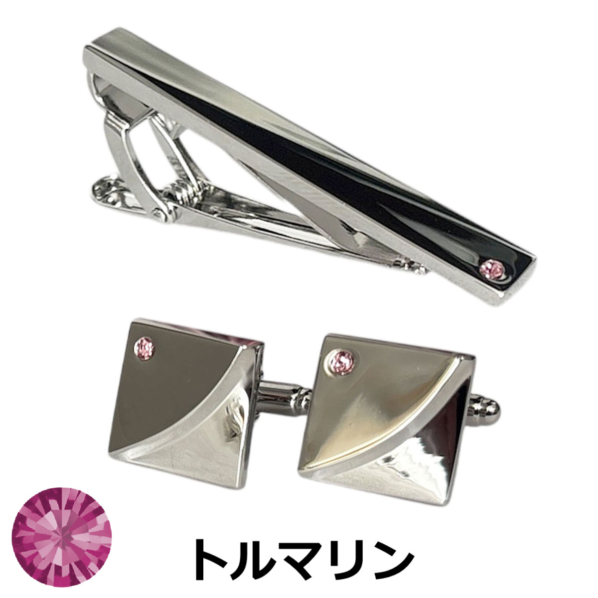 10月の誕生石カラー トルマリンクリスタルガラスカフスボタン・ネクタイピンセット