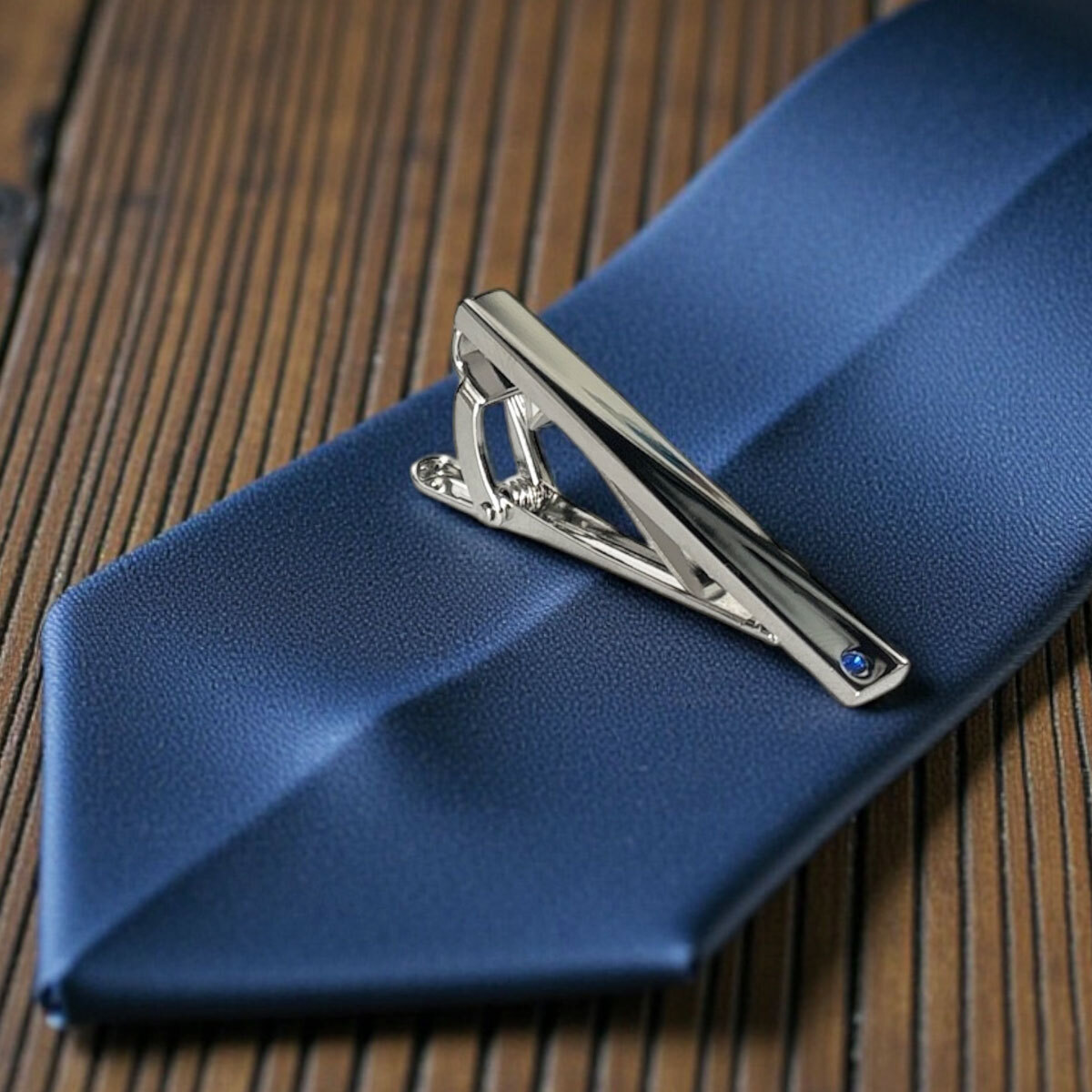 12月の誕生石カラー ブルージルコン.リスタルガラスカフスボタン・ネクタイピンセット