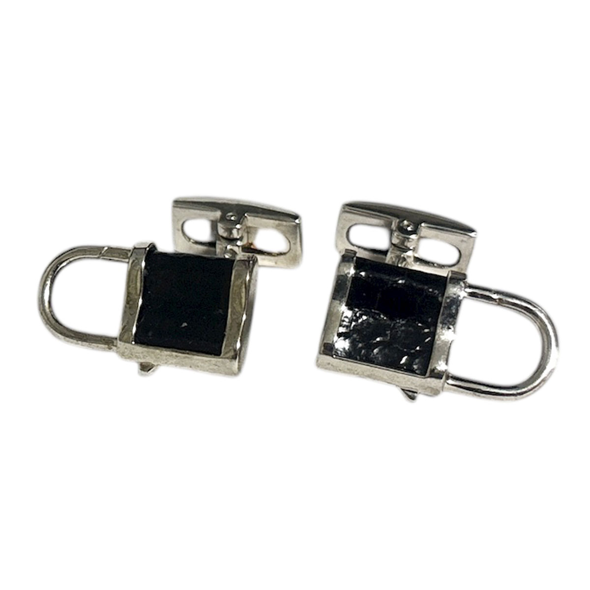 Babette Wasserman バベットワッサーマン ブルーレザー&南京錠カフスボタン(カフリンクス) [bw-c365bl]