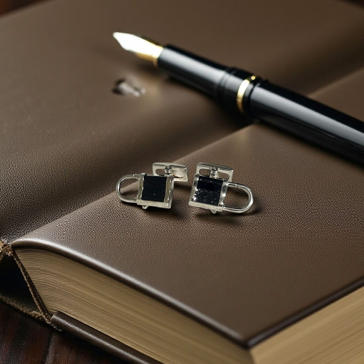 ブラックオニキス・スクエアーカフスボタン(カフリンクス) [qc012]