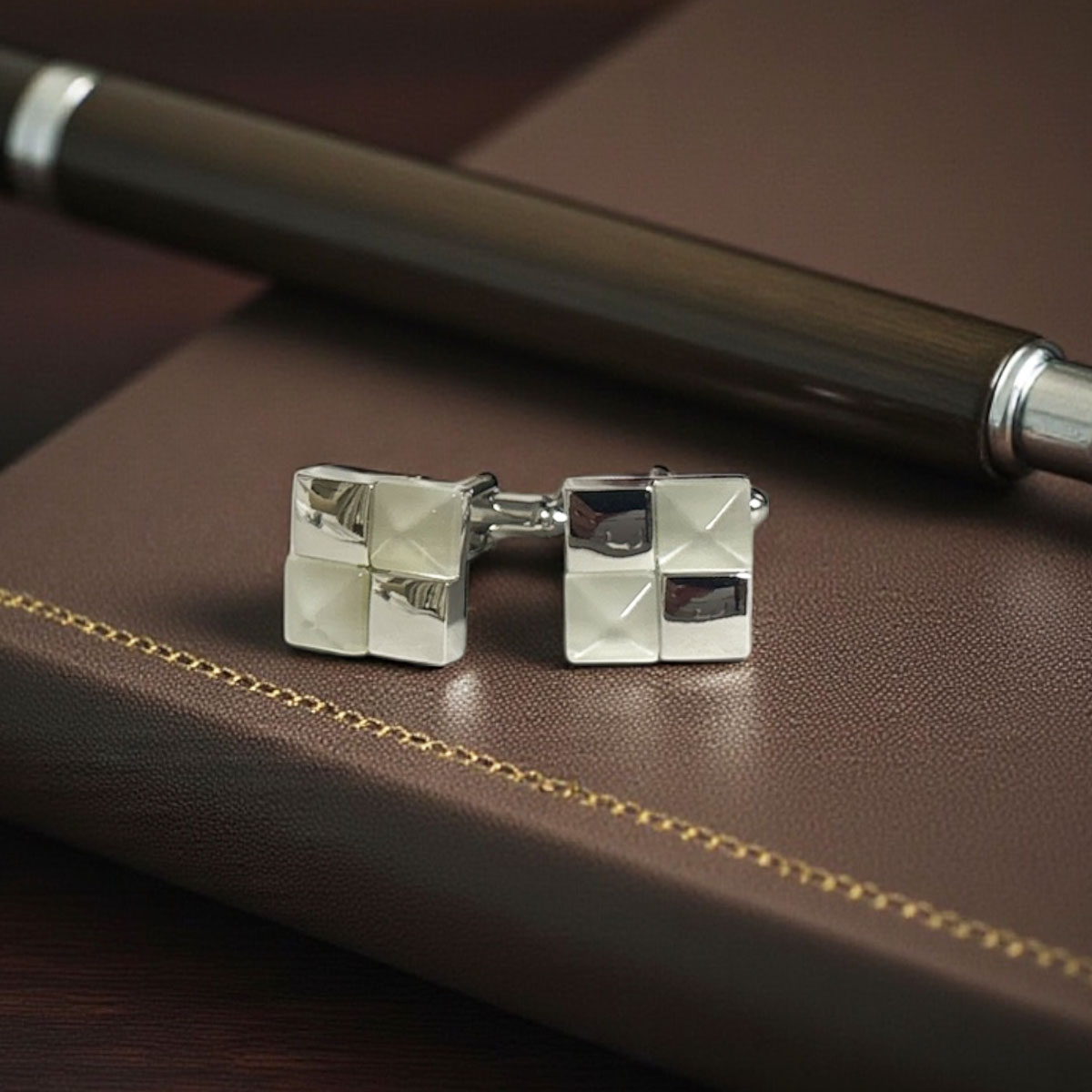ホワイトキャッツアイ ポインターカフスボタン(カフリンクス)