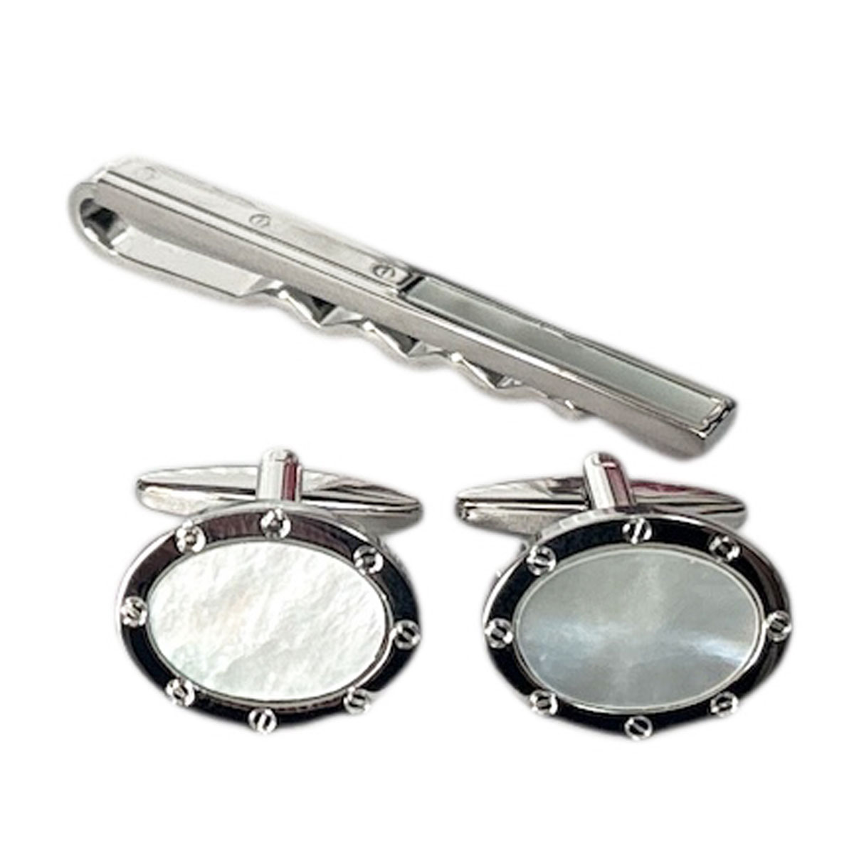 2本のブラックラインを施したスタイリッシュなネクタイピンと 同じく2本のラインの入ったカフスのセット。 シンプルだけどシーンを選ばず使えます。