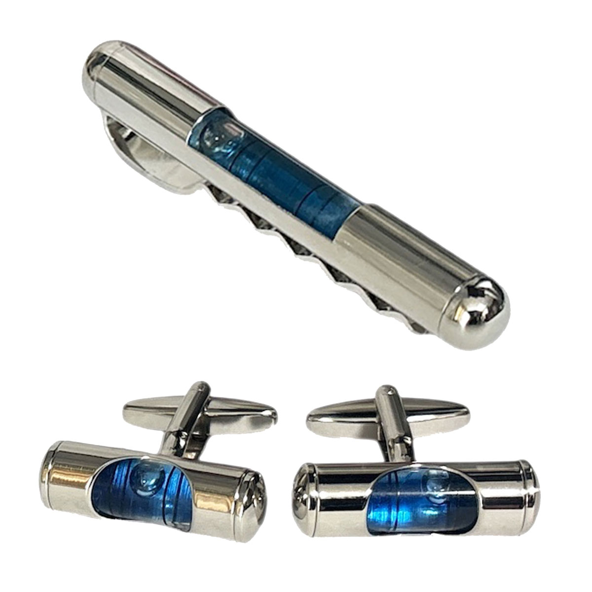 ブルーのグラデーションクリスタルを使用したスタイリッシュななネクタイピンと カフスのセット。ブルーとライトブルーのクリスタルが 爽やかな印象を与えますよ。